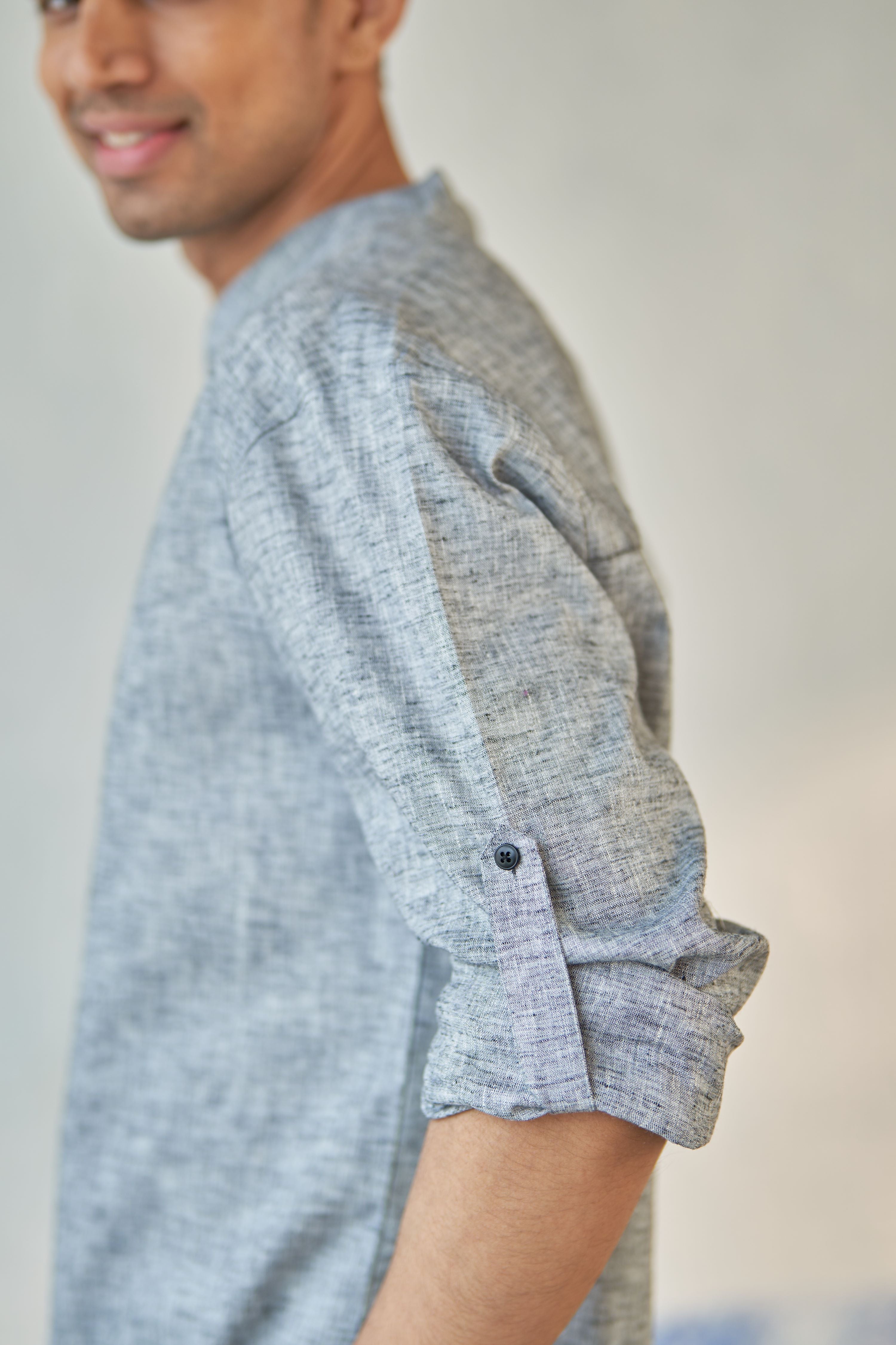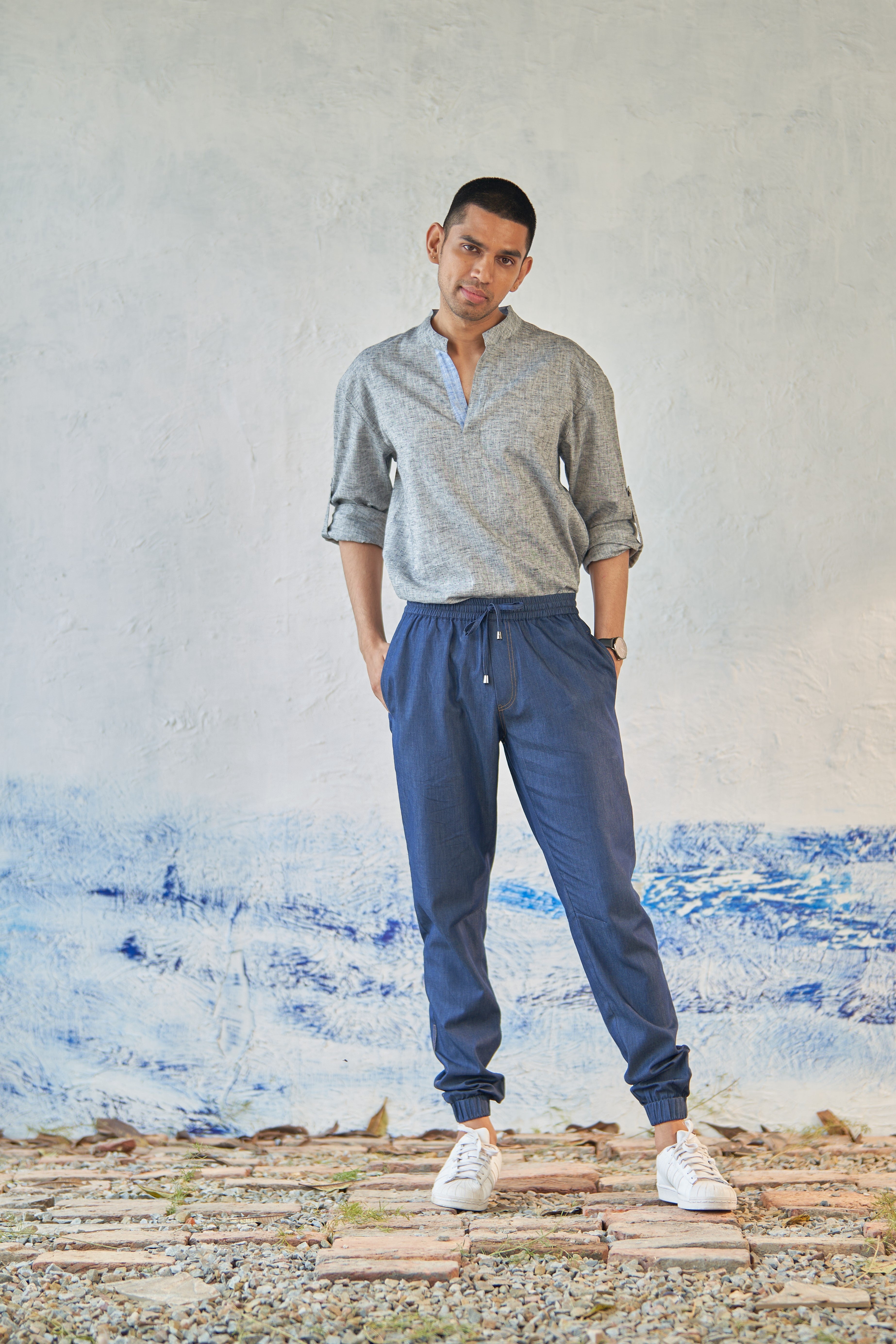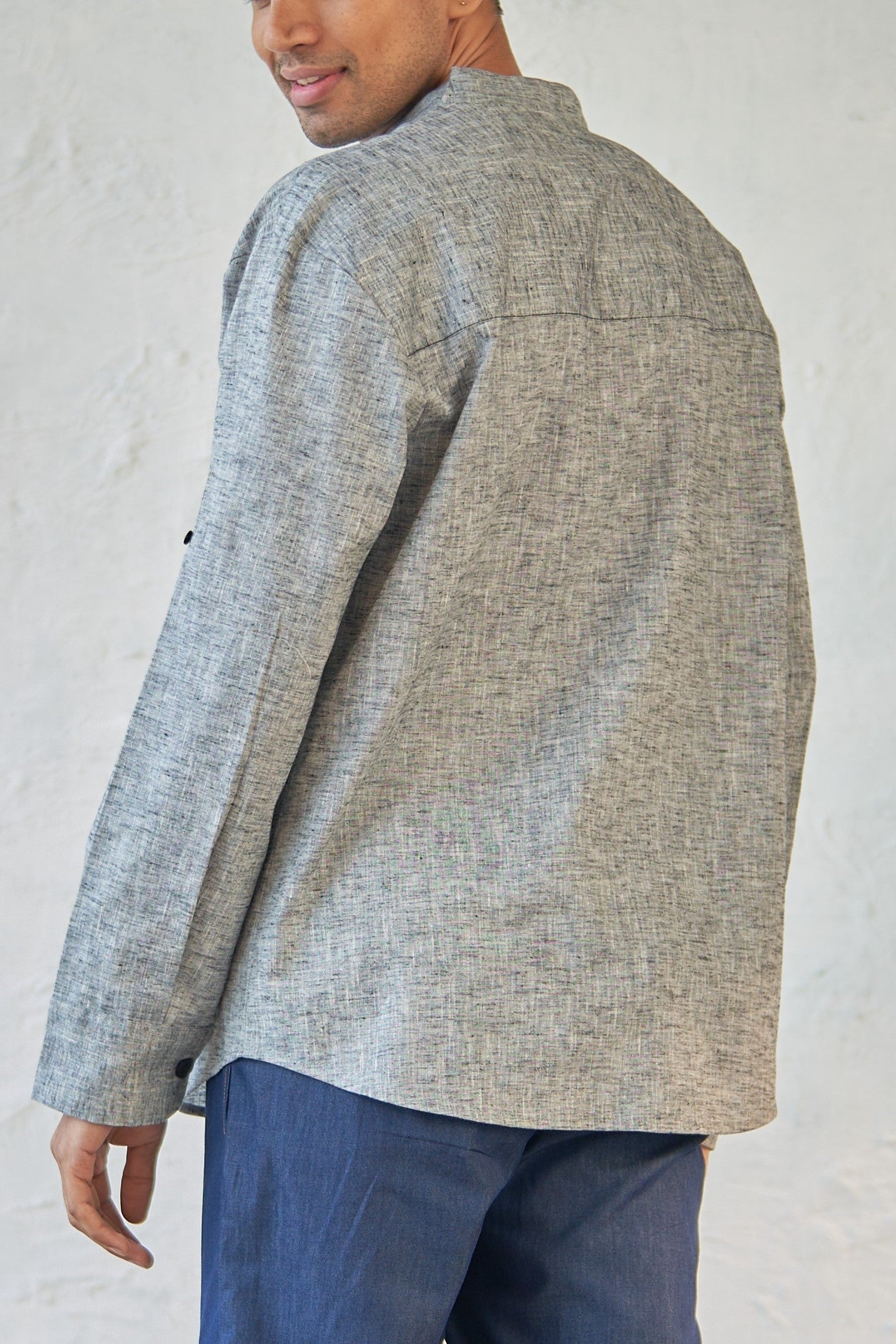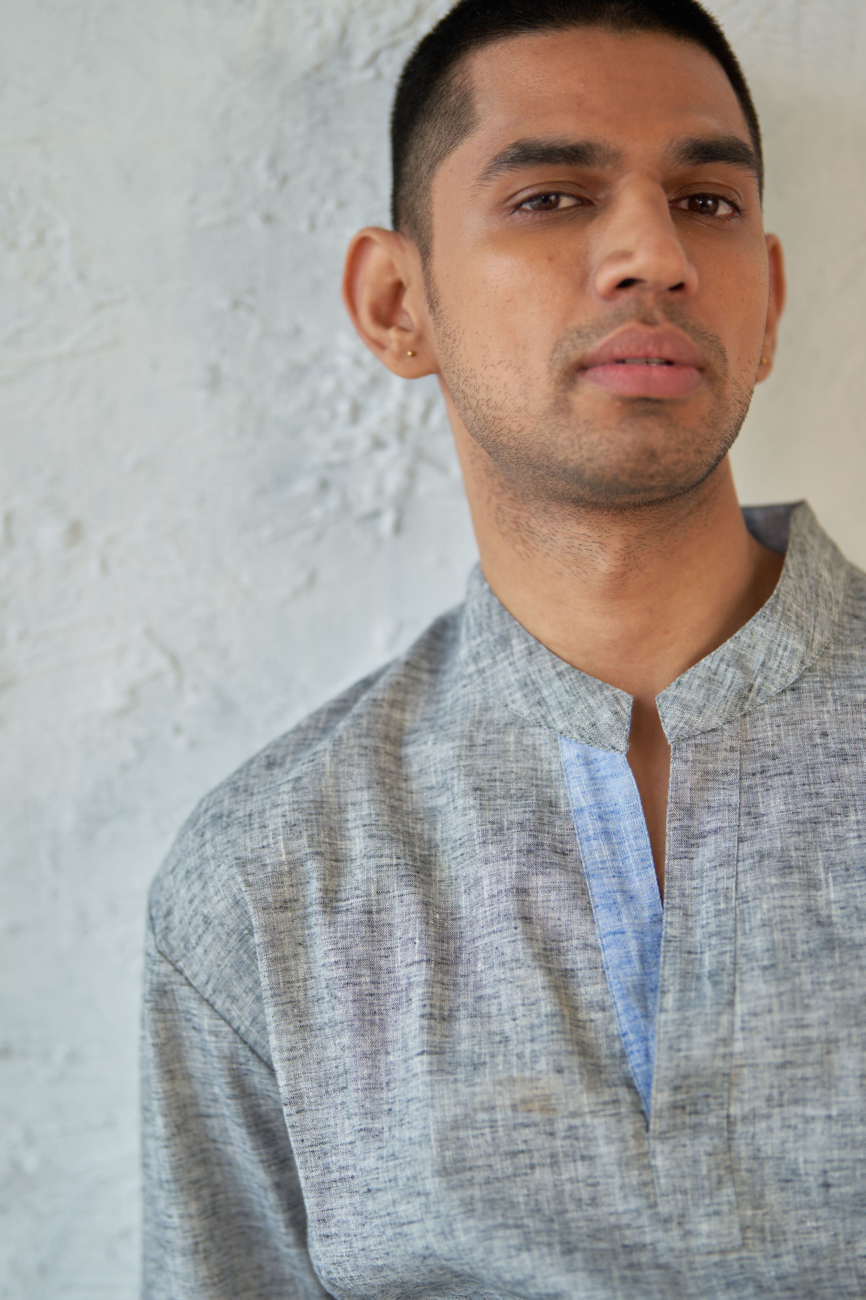 This piece offers a refined take on the classic polo shirt, artfully crafted in textured cotton. Tailored in a relaxed shape with an overlapping placket that creates a stylish v-neck opening. The broad back yoke reflects a shirt fit while enhancing the comfort reminiscent of a kurta. Stride the streets all day long or sit through the workday in effortless style.